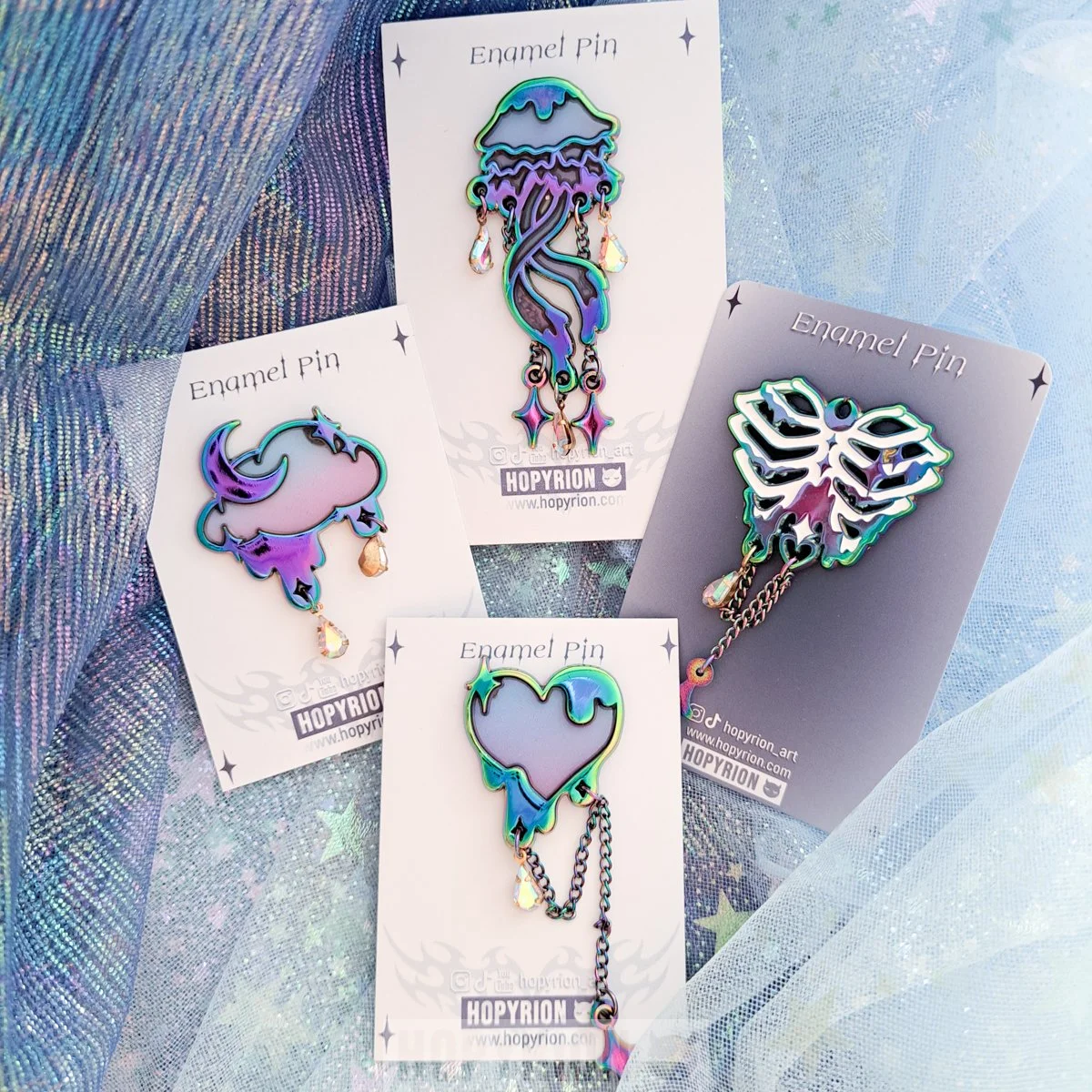 This is my first collection with stronger influence from a specific game/series that I'm very passionate about, so I hope you'll still like the designs π All pins are designed to be able to stand alone, and not all of them has strong ties to the inspiration source. I still wanted to make a collection that represents my own style, and I might only have used vague elements and mixed in my own aesthetic. A lot of it is "IYKYK" kinda thing π The biggest clues will probably be in the naming of the products.